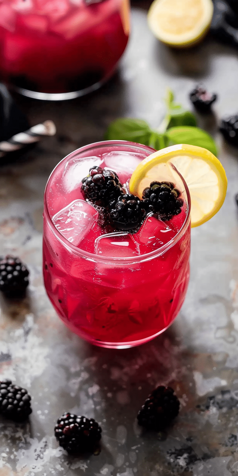 Step into summer with a refreshing twist on a classic beverage: Blackberry Basil Lemonade. This delightful drink combines the tartness of fresh lemons, the sweet juiciness of blackberries, and a hint of aromatic basil to create a vibrant, thirst-quenching concoction. Perfect for sipping on a warm day, this lemonade brings a burst of color and flavor to any table, making it an ideal choice for gatherings or a relaxing afternoon treat.