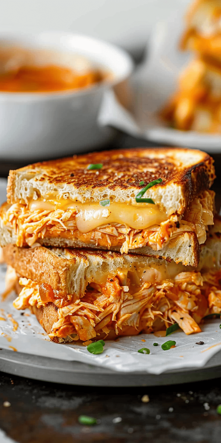 You’ll love the Buffalo Chicken Grilled Cheese with Caramelized Onion because it brings a gourmet twist to the classic grilled cheese.