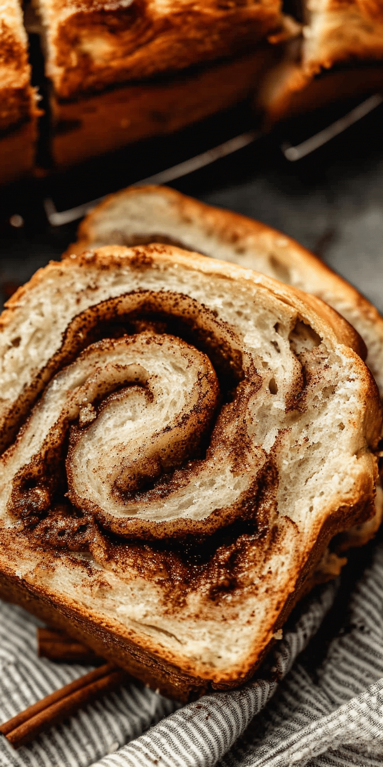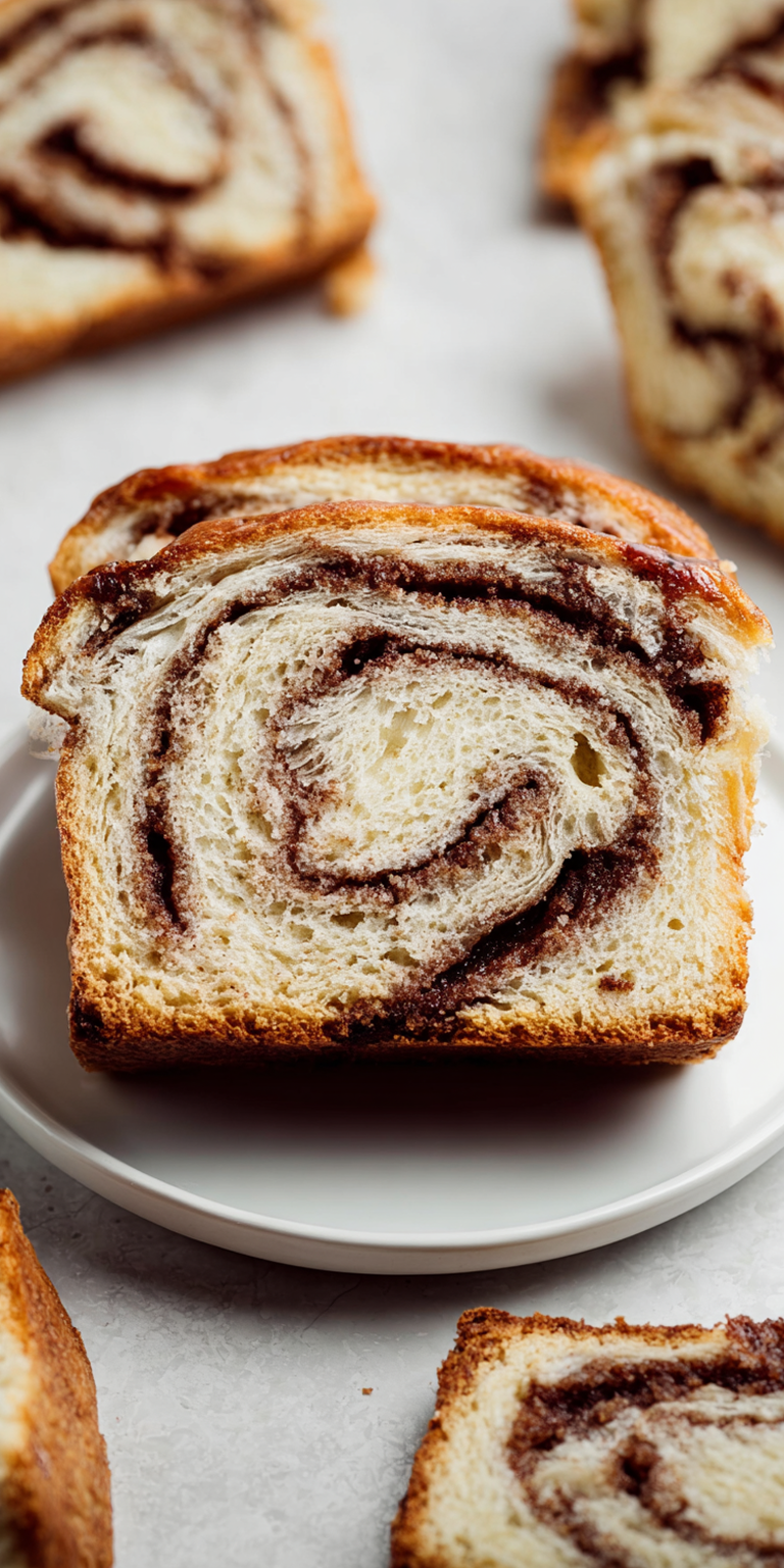 Serve Cinnamon Swirl Bread warm or at room temperature, sliced and spread with butter or cream cheese. It pairs wonderfully with a cup of coffee, tea, or hot cocoa. For an indulgent breakfast, use it to make French toast or bread pudding. This bread also makes a fantastic addition to any brunch spread.