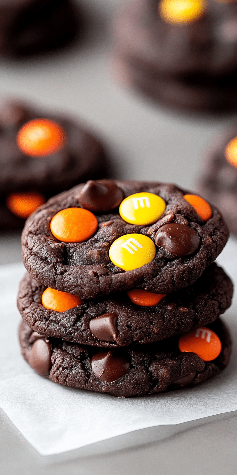 Celebrate Halloween with these festive Dark Chocolate Halloween Cookies! Rich in flavor and filled with colorful orange, yellow, and brown M&Ms, these cookies are perfect for Halloween parties and fall gatherings. Enjoy a delicious blend of dark chocolate and crunchy M&Ms in every bite.