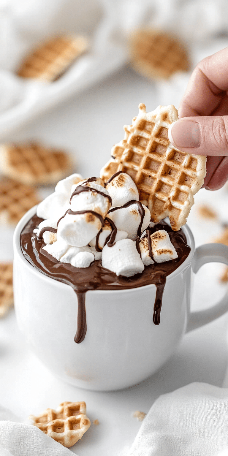 What’s the best way to eat the s’mores dip? You can stick with traditional graham crackers or try something like waffle cookies for a different flavor profile.