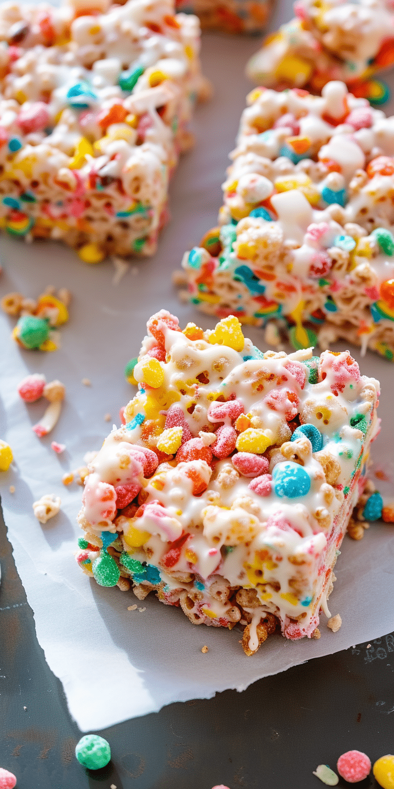 These treats are a fun and nostalgic dessert that combines the classic taste of marshmallow with the fruity goodness of Fruity Pebbles cereal.