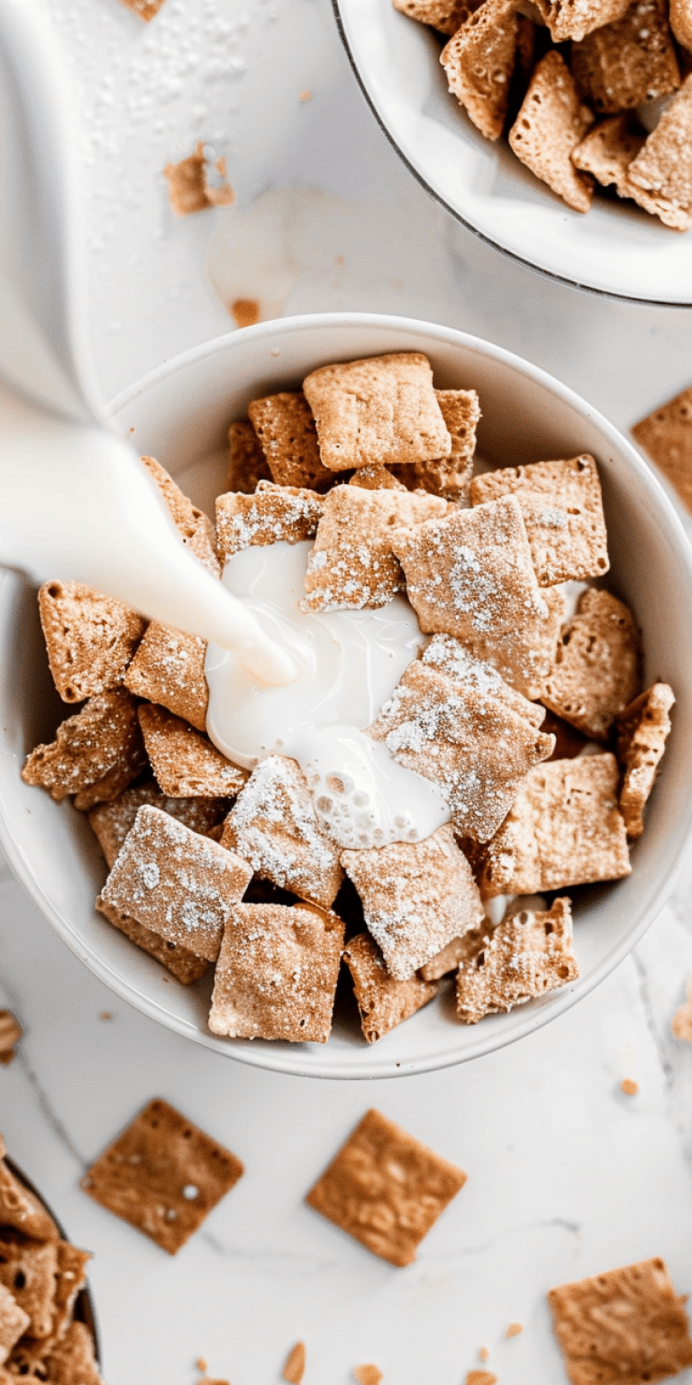 Serve Homemade Cinnamon Toast Crunch with cold milk or as a topping for yogurt. It also makes a delightful addition to trail mix or can be enjoyed on its own as a crunchy snack. For a decadent treat, sprinkle it over vanilla ice cream or add it to a bowl of fresh fruit.