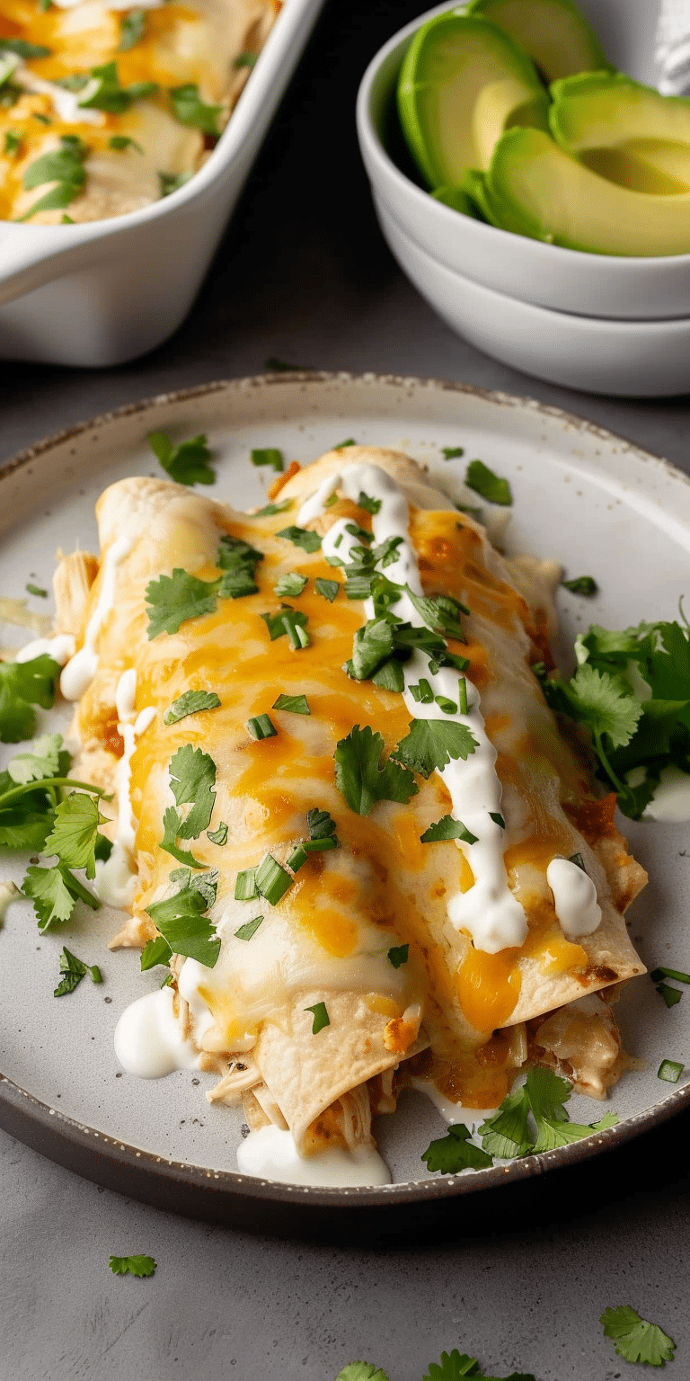Indulge in the creamy, comforting flavors of Sour Cream Chicken Enchiladas. This easy-to-make dish combines tender chicken, tangy sour cream, and melted cheese for a delicious, crowd-pleasing meal perfect for any occasion.