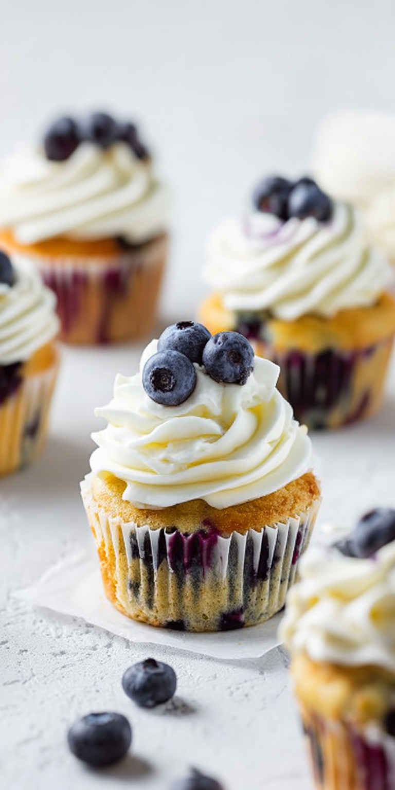 - Garnish each cupcake with a few fresh blueberries, adding a pop of color and freshness.
